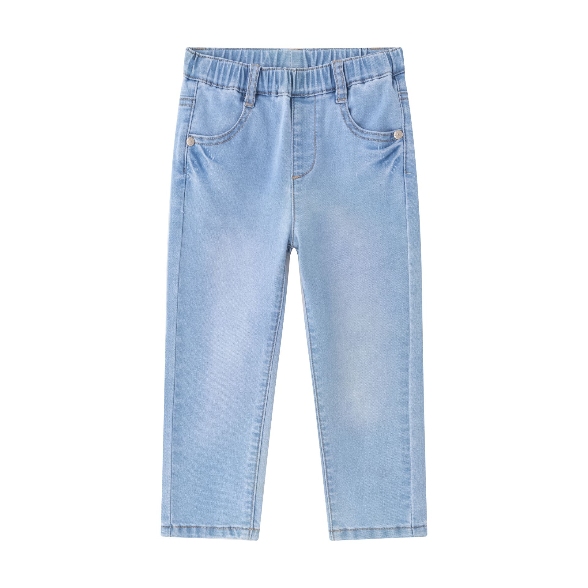 Baby boy long jeans. Waistband and hem with inner elastic. One patch pocket on the back with boat graphic.