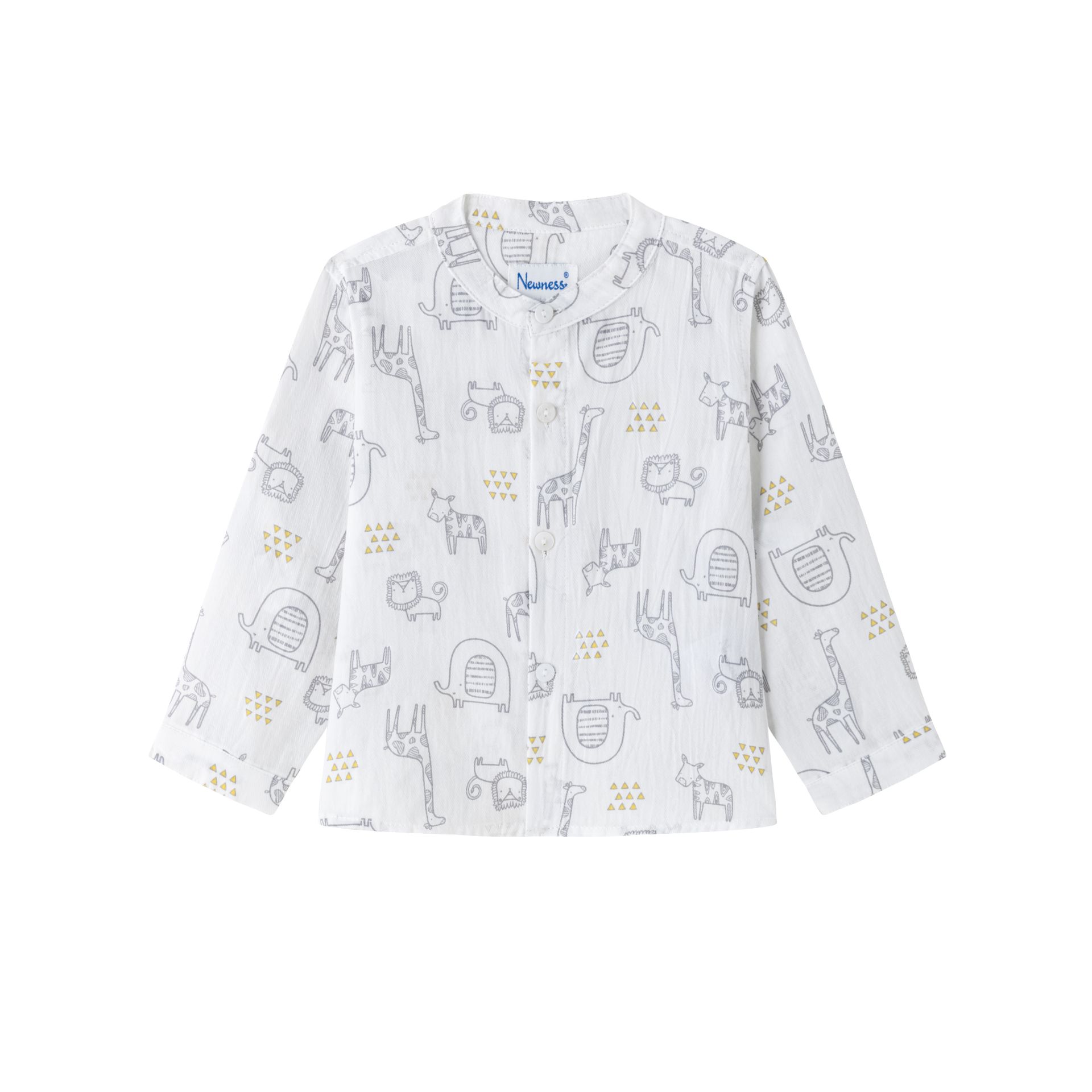 Baby boy's shirt, 100% cotton, with mao collar, long sleeves and animal print.