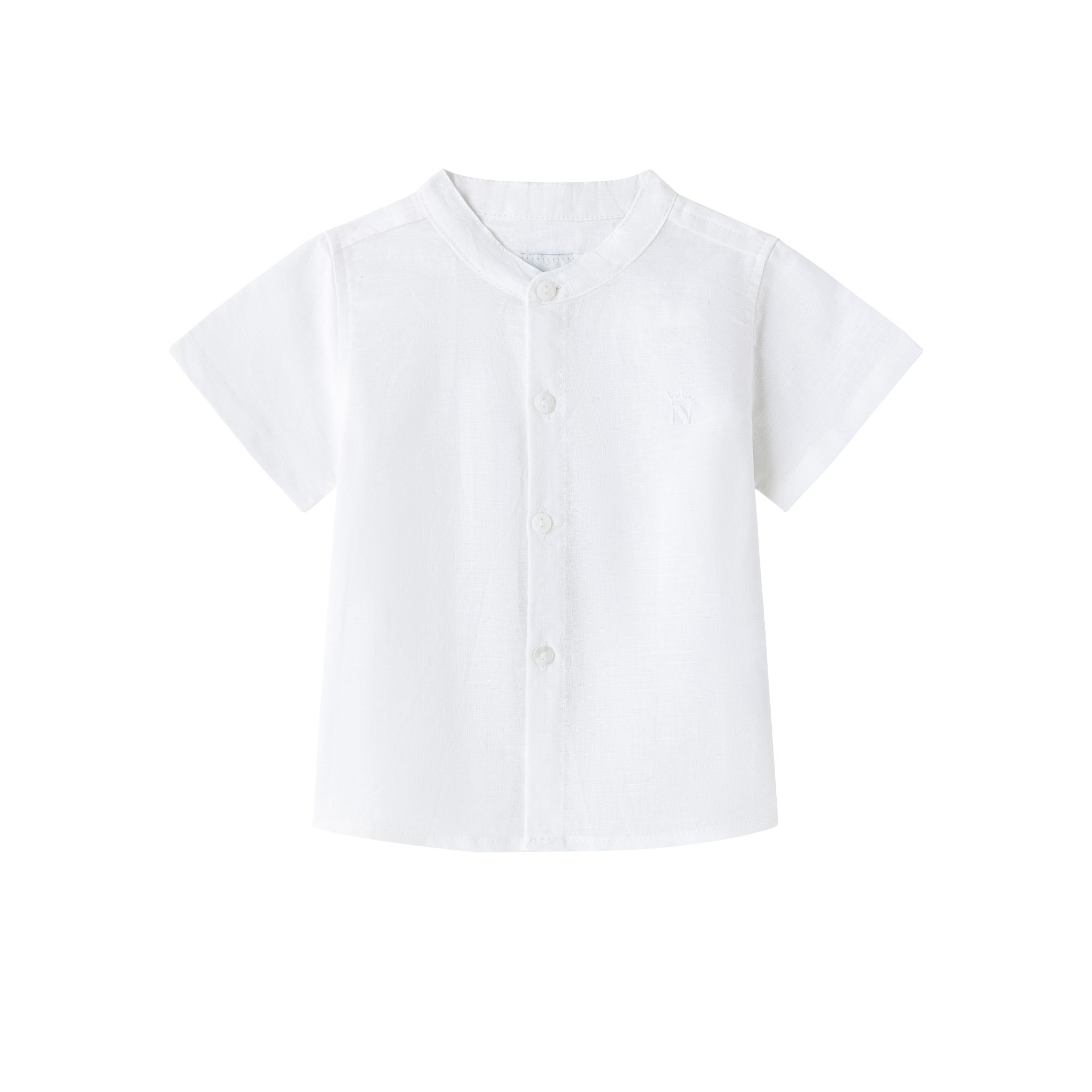 Baby boy's shirt with Mao collar, made of linen and cotton fabric.