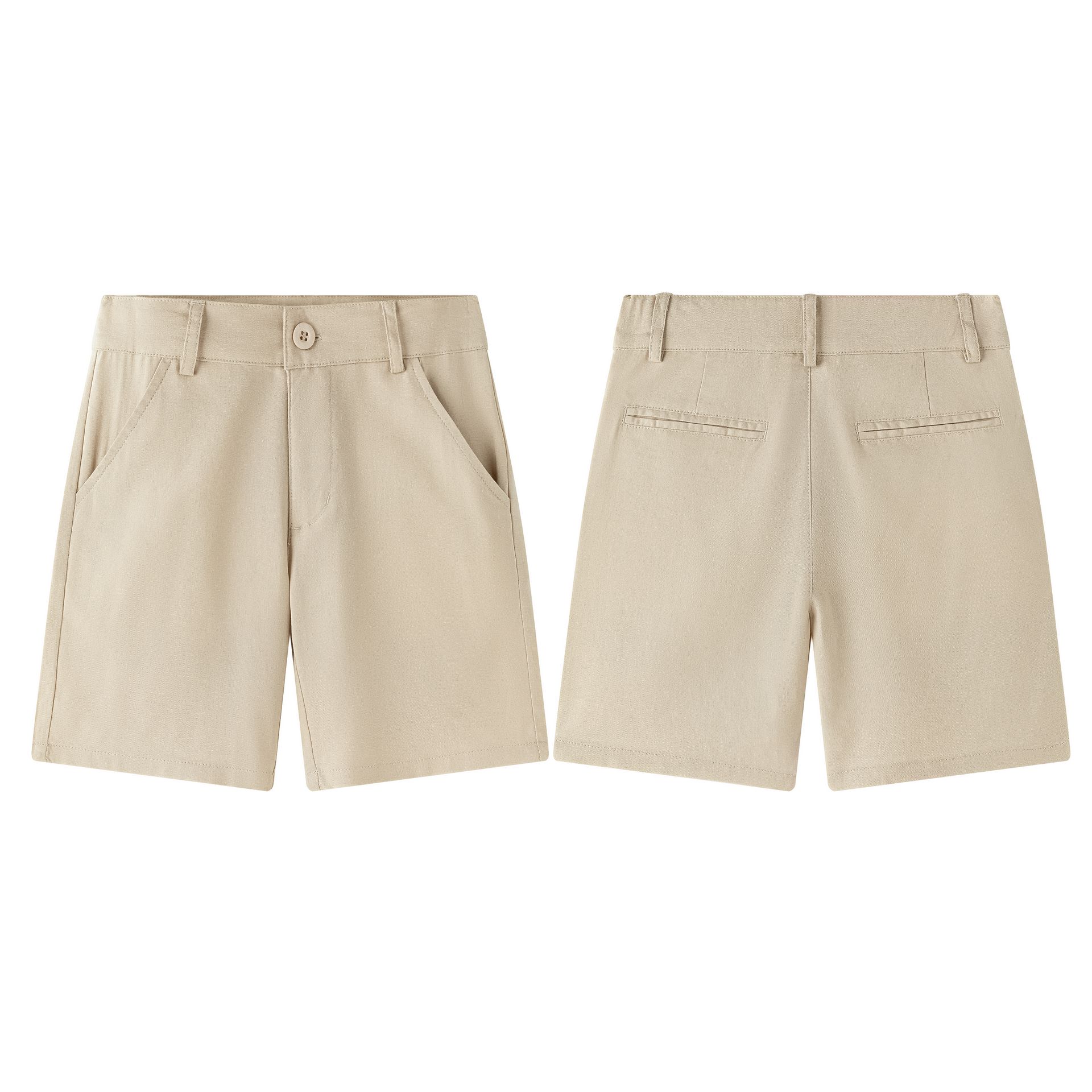 Dressy bermuda shorts in camel in treated linen with adjustable waistband for greater comfort