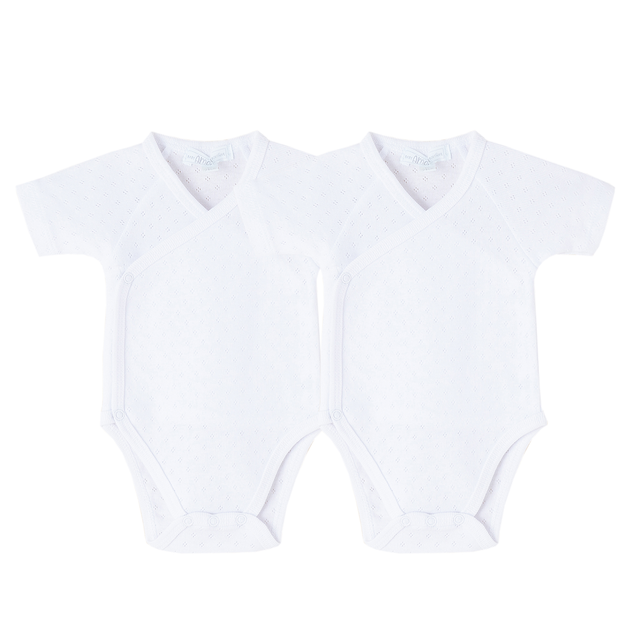 Bodies pack de 2 pcs cruzado calados para bebe recien nacido m/c blanco + blanco