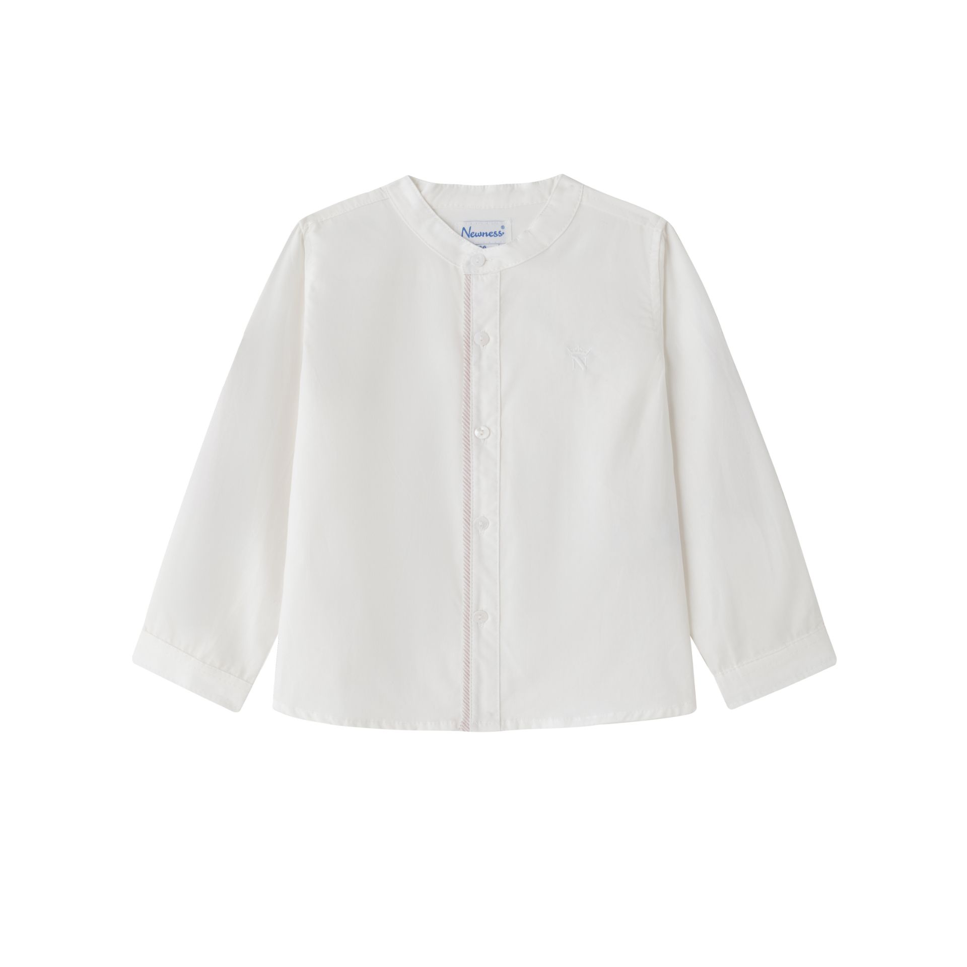 Shirt with a shirt collar and contrasting embroidery on the front and long sleeves, with a striped tab on the sleeve