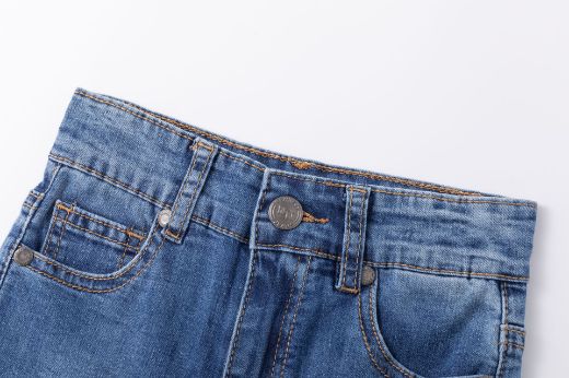 Boys' five-pocket denim jeans. Denim-colored, medium wash.