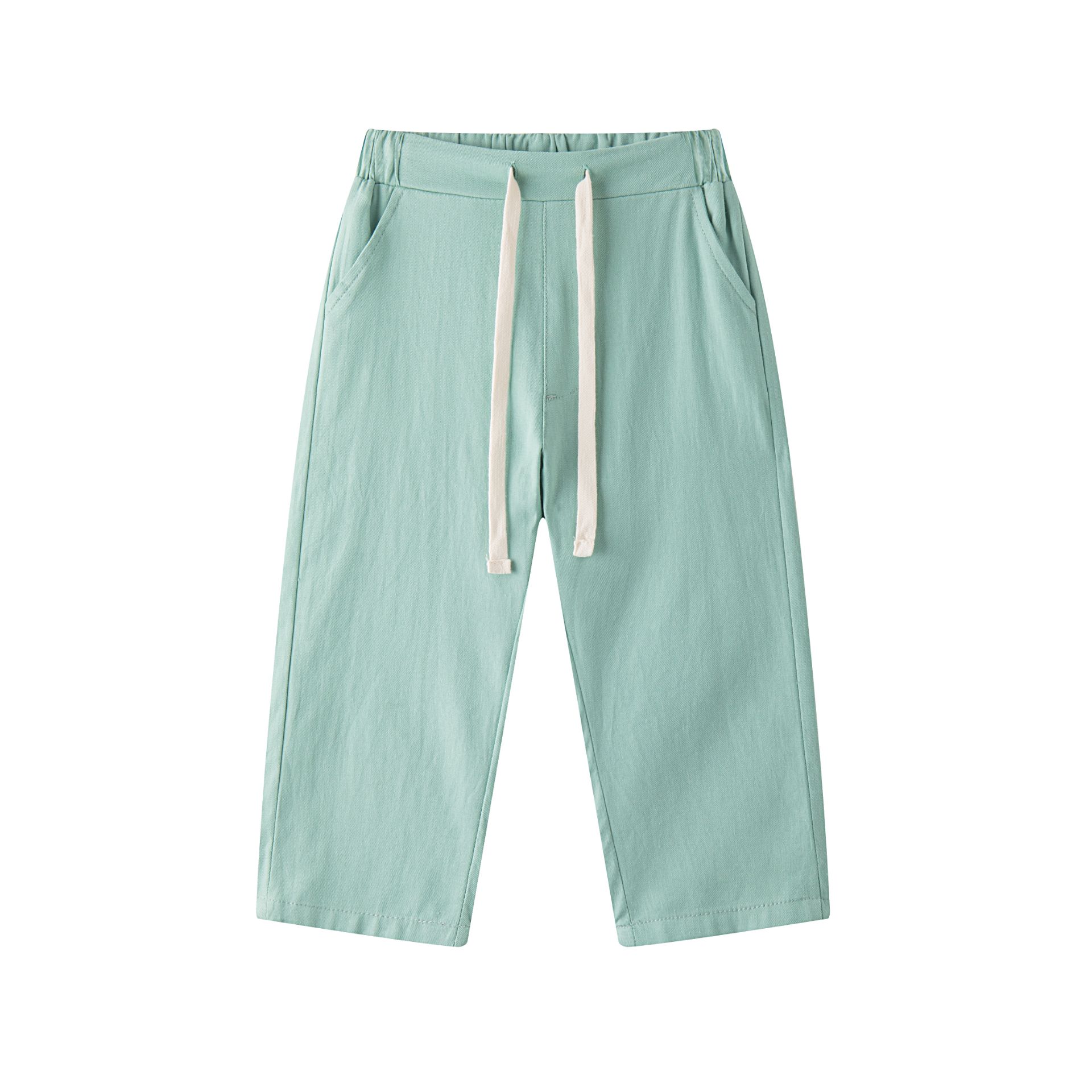 Long woven trousers with front pockets and elastic waistband
