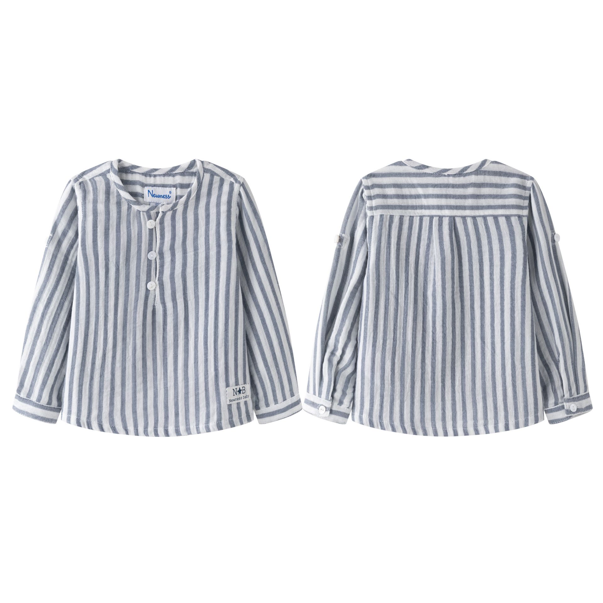 Long-sleeve baby shirt 6–24M in bambula fabric with navy blue fine stripes, Surf Old Style collection