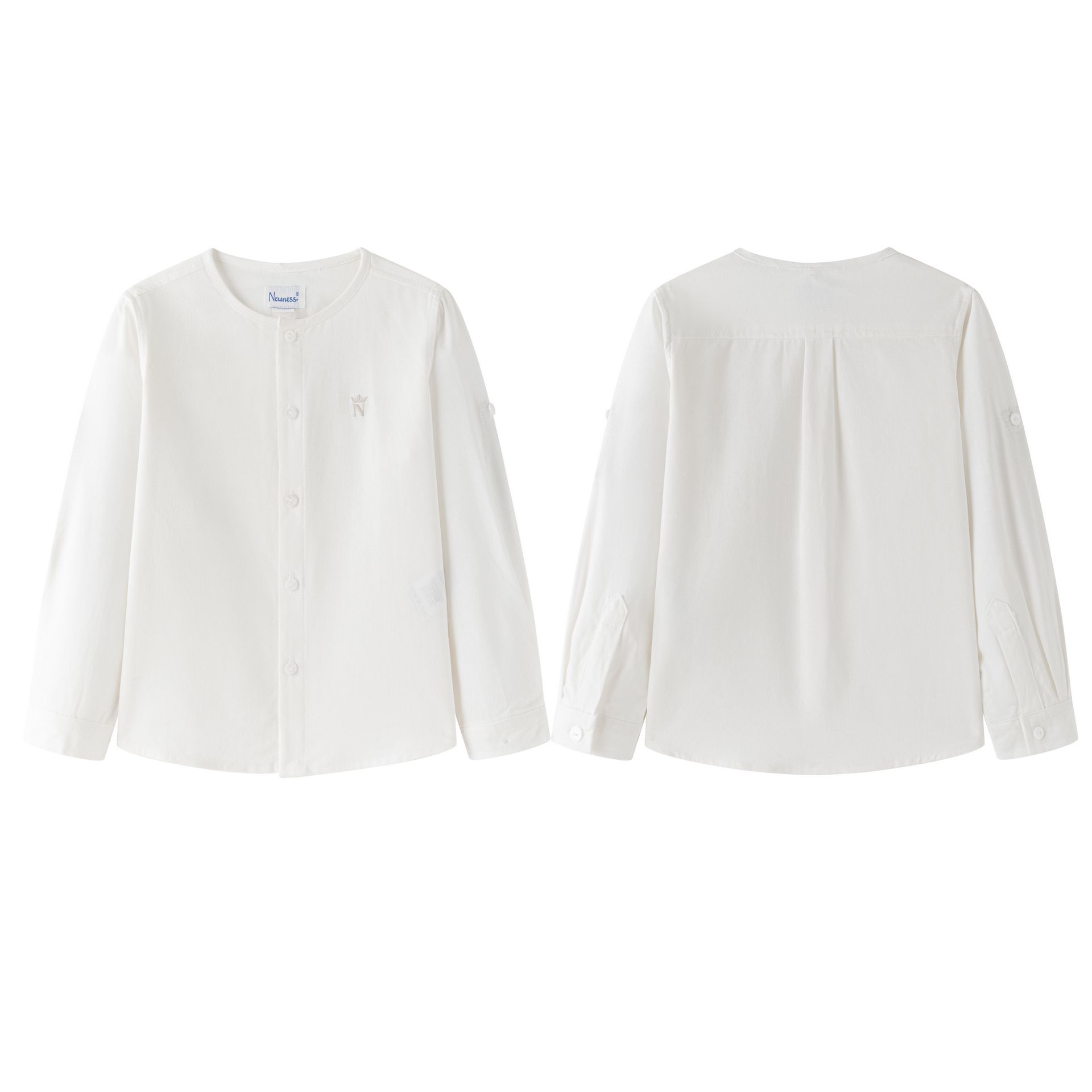 White dress shirt for boys 3–9Y in 100% cotton with piping on the collar and delicate embroidery