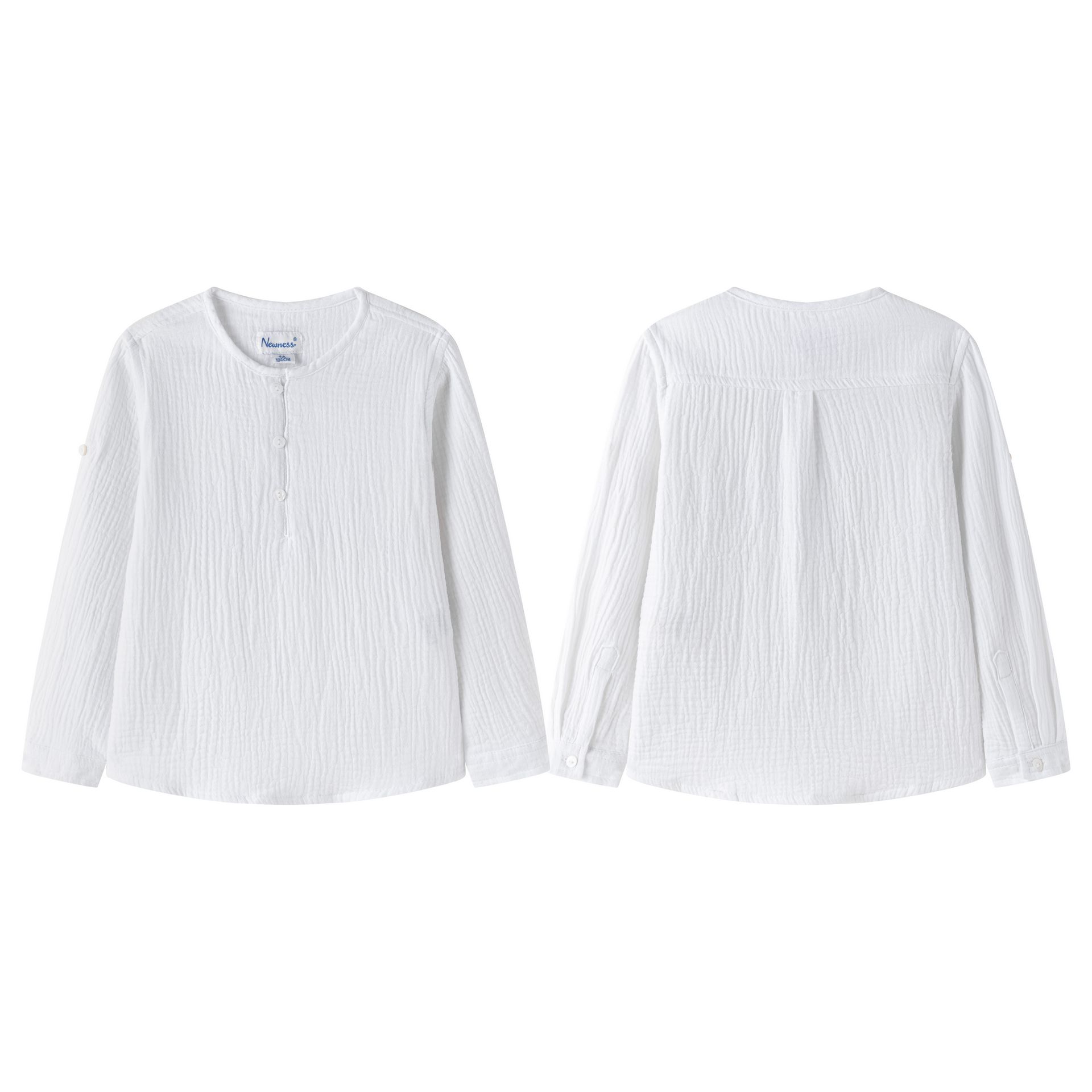 White long-sleeve adjustable shirt for boys 2–6Y in bambula fabric, Surf Old Style collection