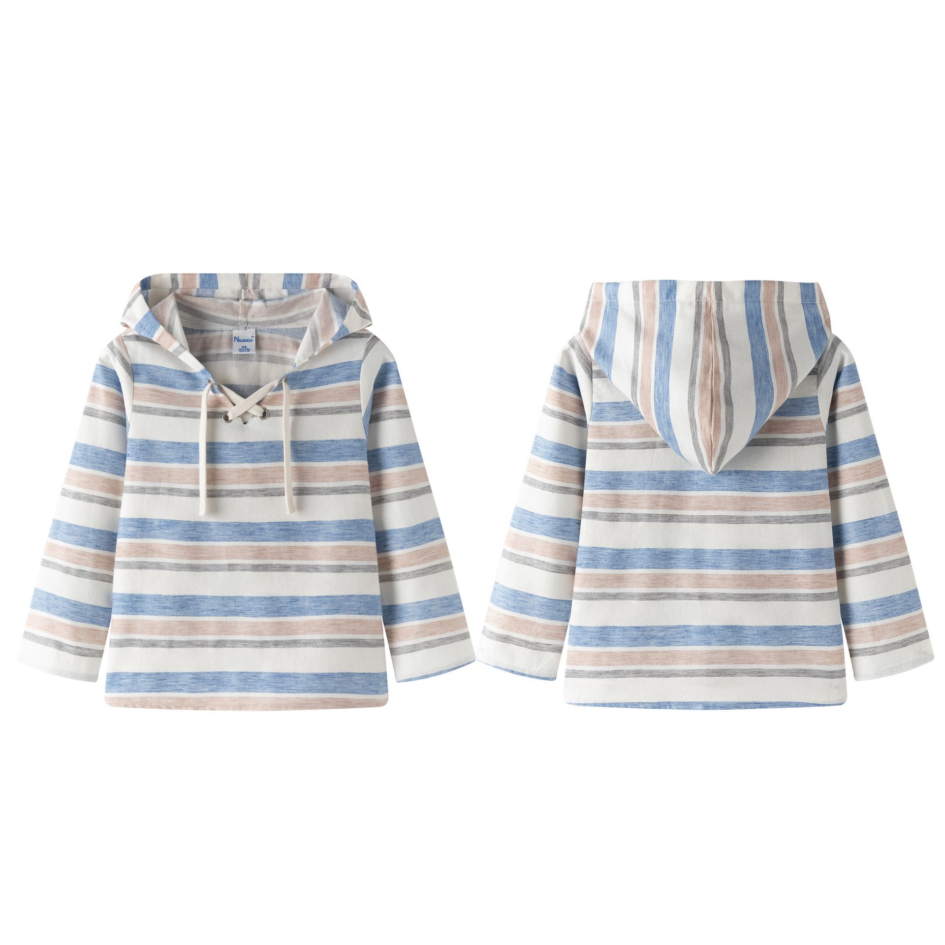 Hooded sweatshirt-style shirt for boys 3–9Y in elegant multicolor stripes, Surf Old Style collection