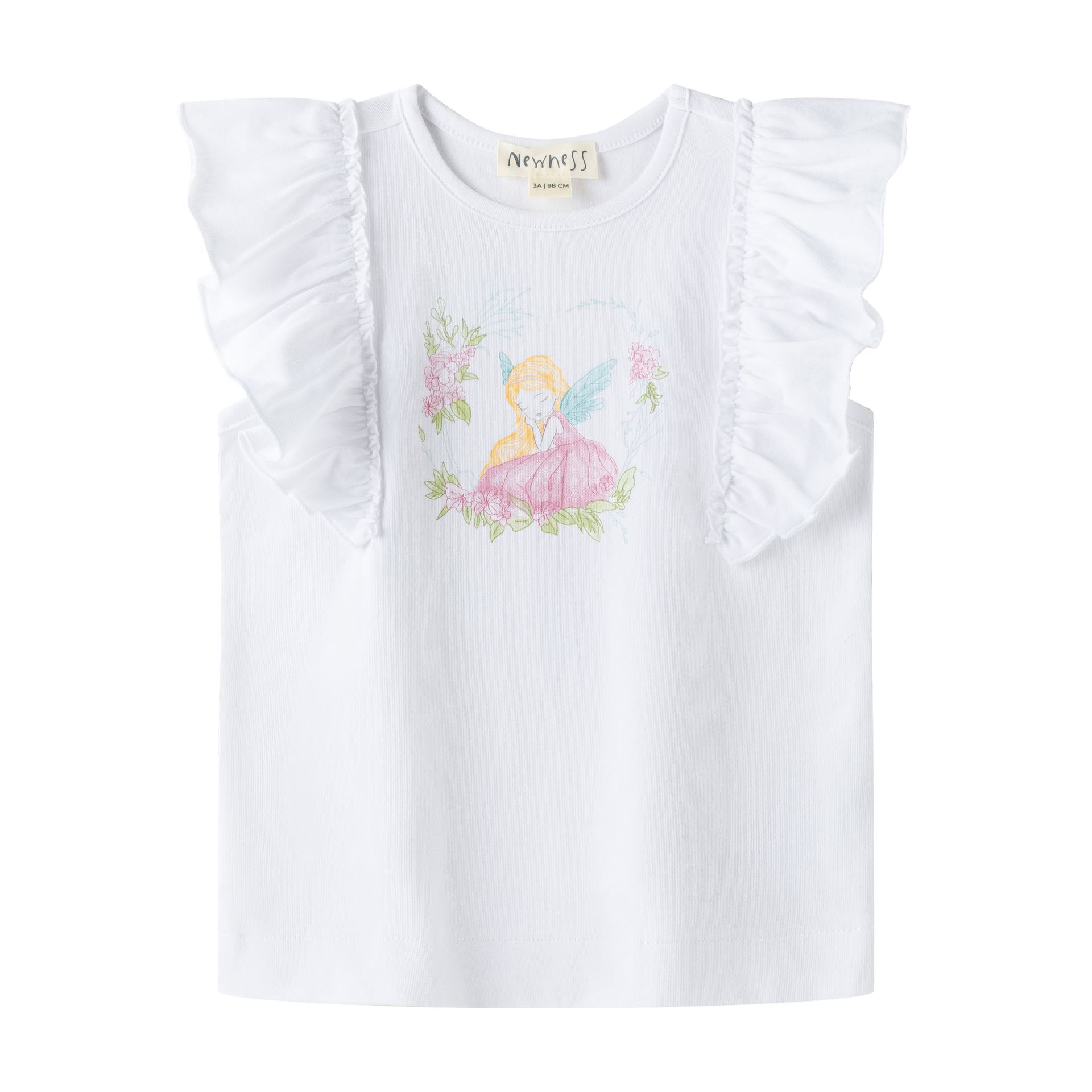 White T-shirt for girls 3–9Y with ruffle details and front central design