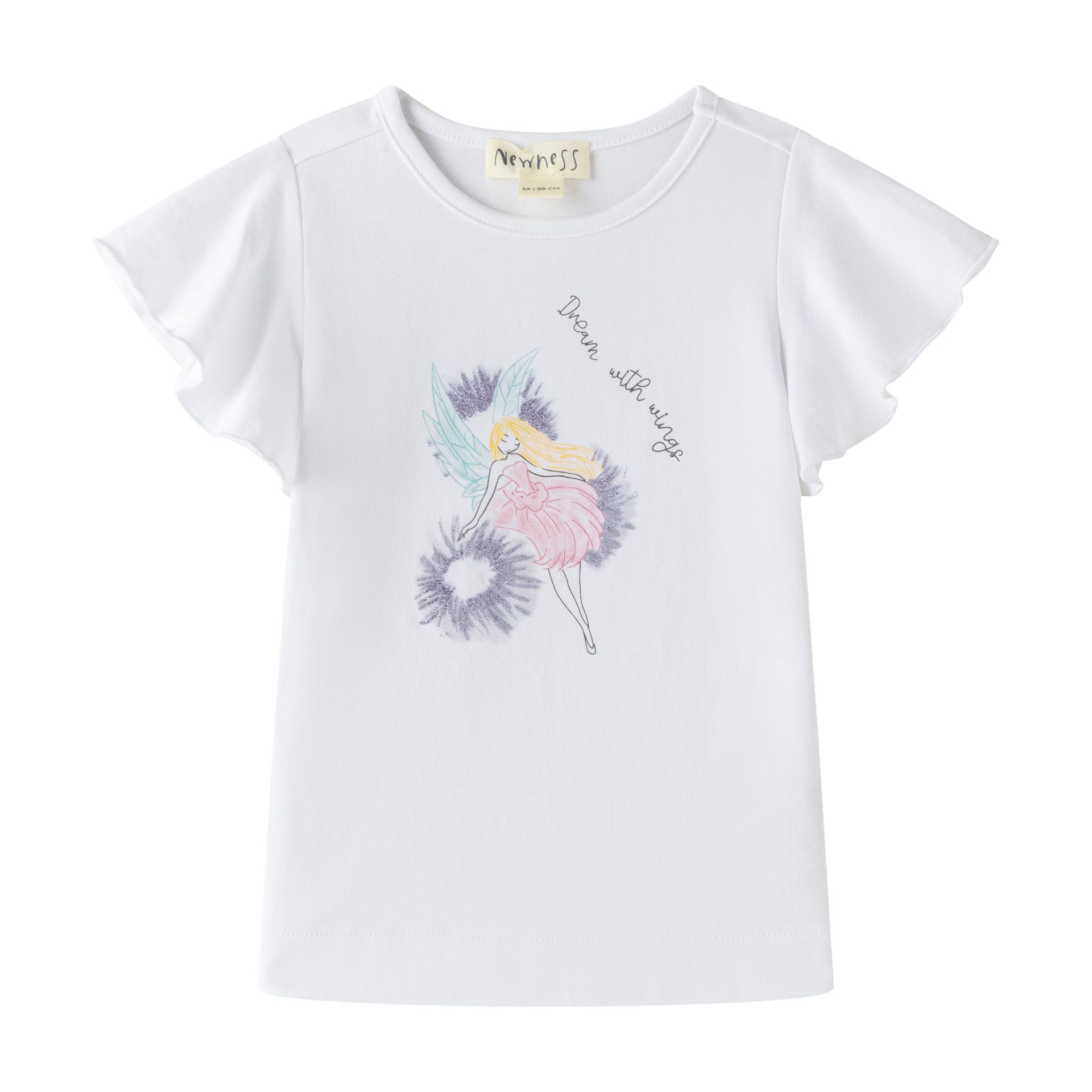 White T-shirt for girls 3–9Y with ruffled sleeves and front central design