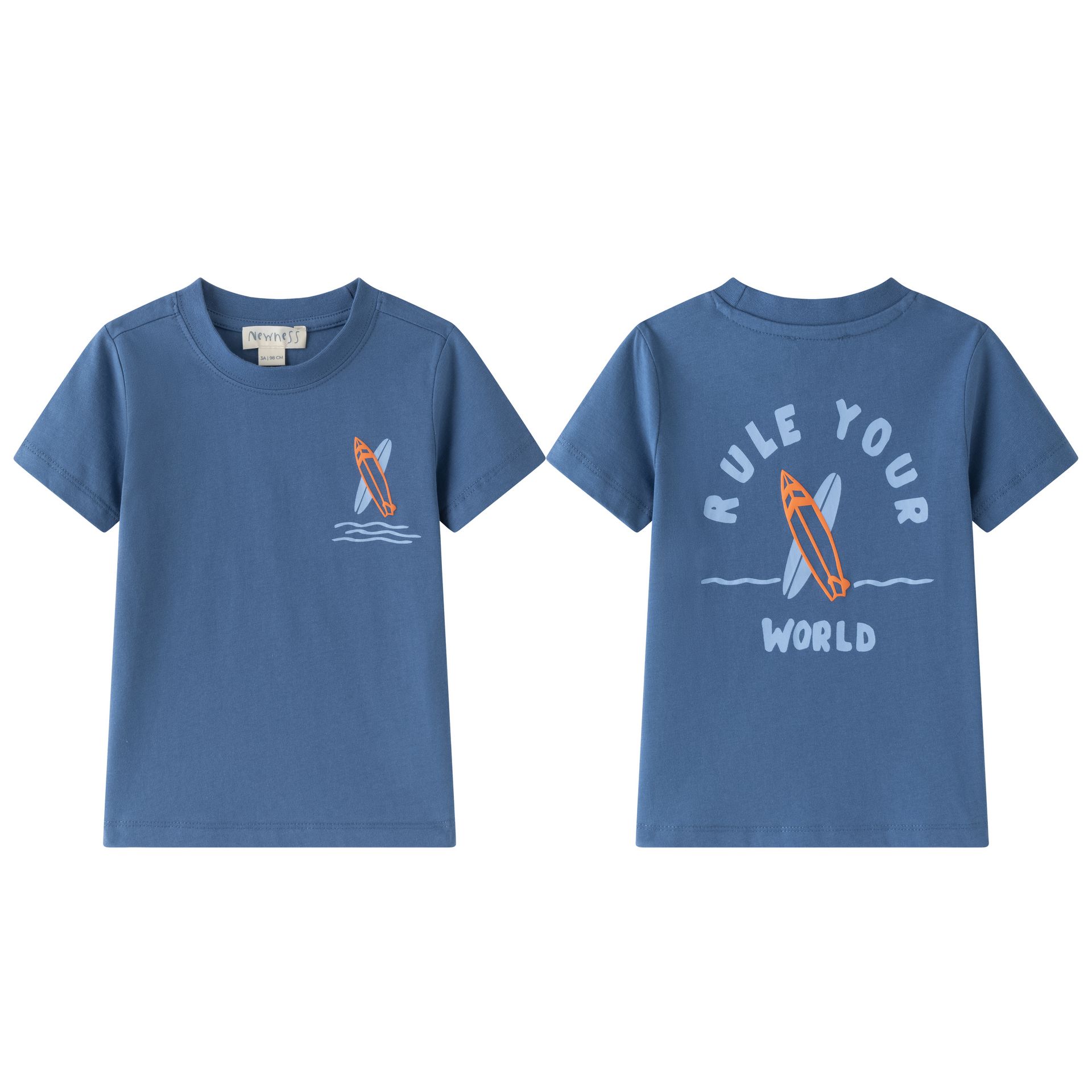 Boys’ T-shirt 3–9Y in medium blue in cotton with surfer details on the back, Surf Old Style collection