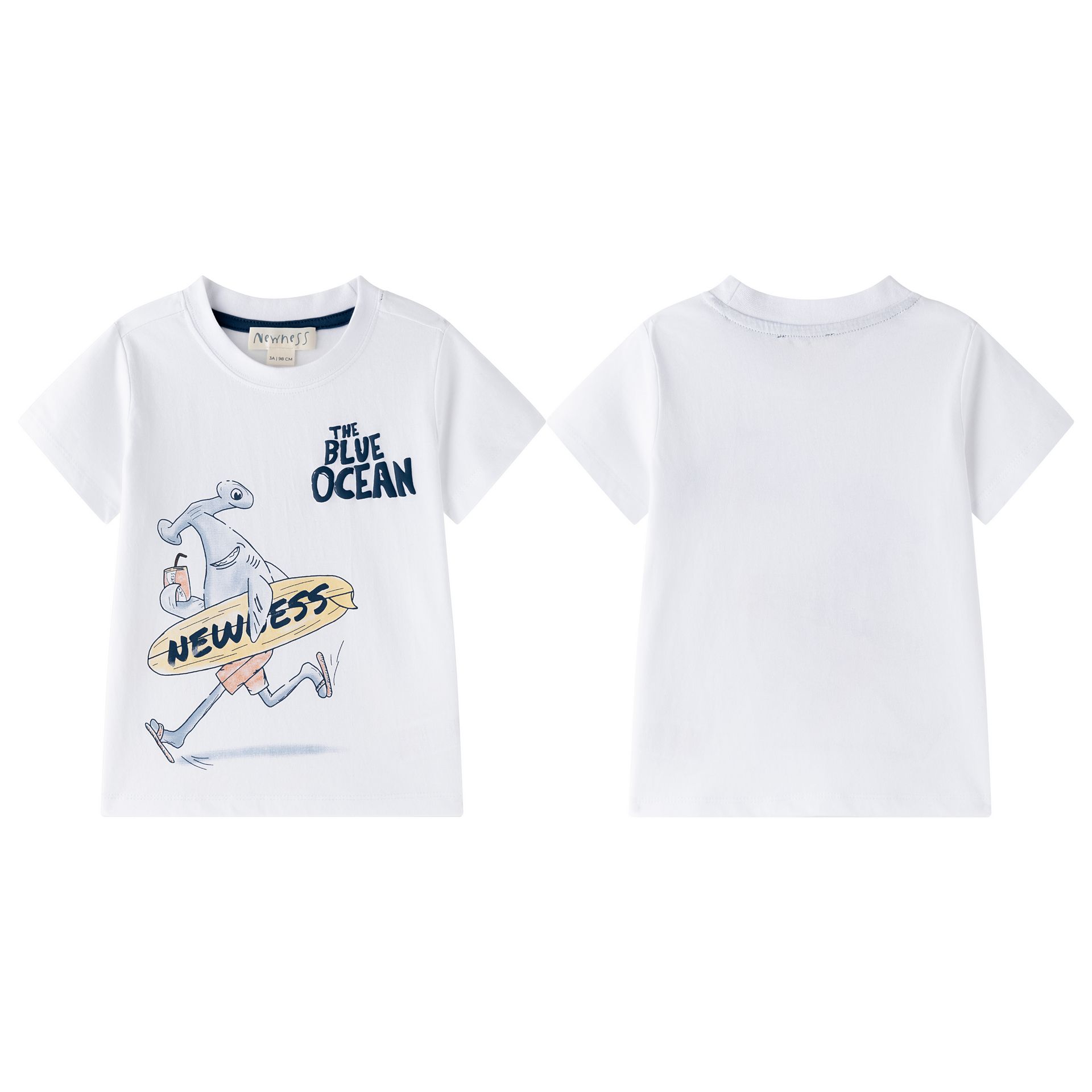 Boys’ T-shirt 3–9Y in white cotton with surfer details, Surf Old Style collection