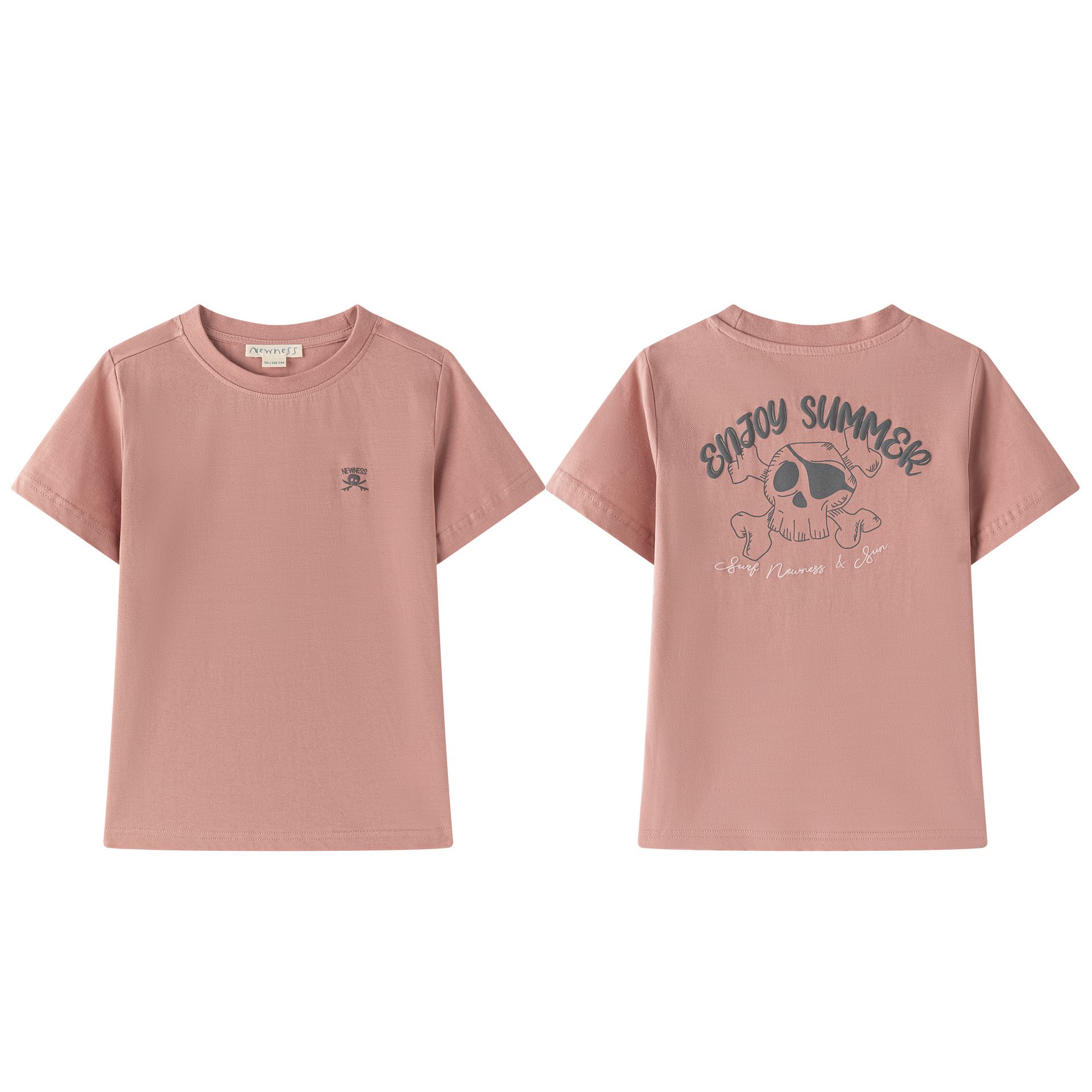Boys’ T-shirt 7–12Y in treated burgundy with front and back designs, Wonder & Joy collection