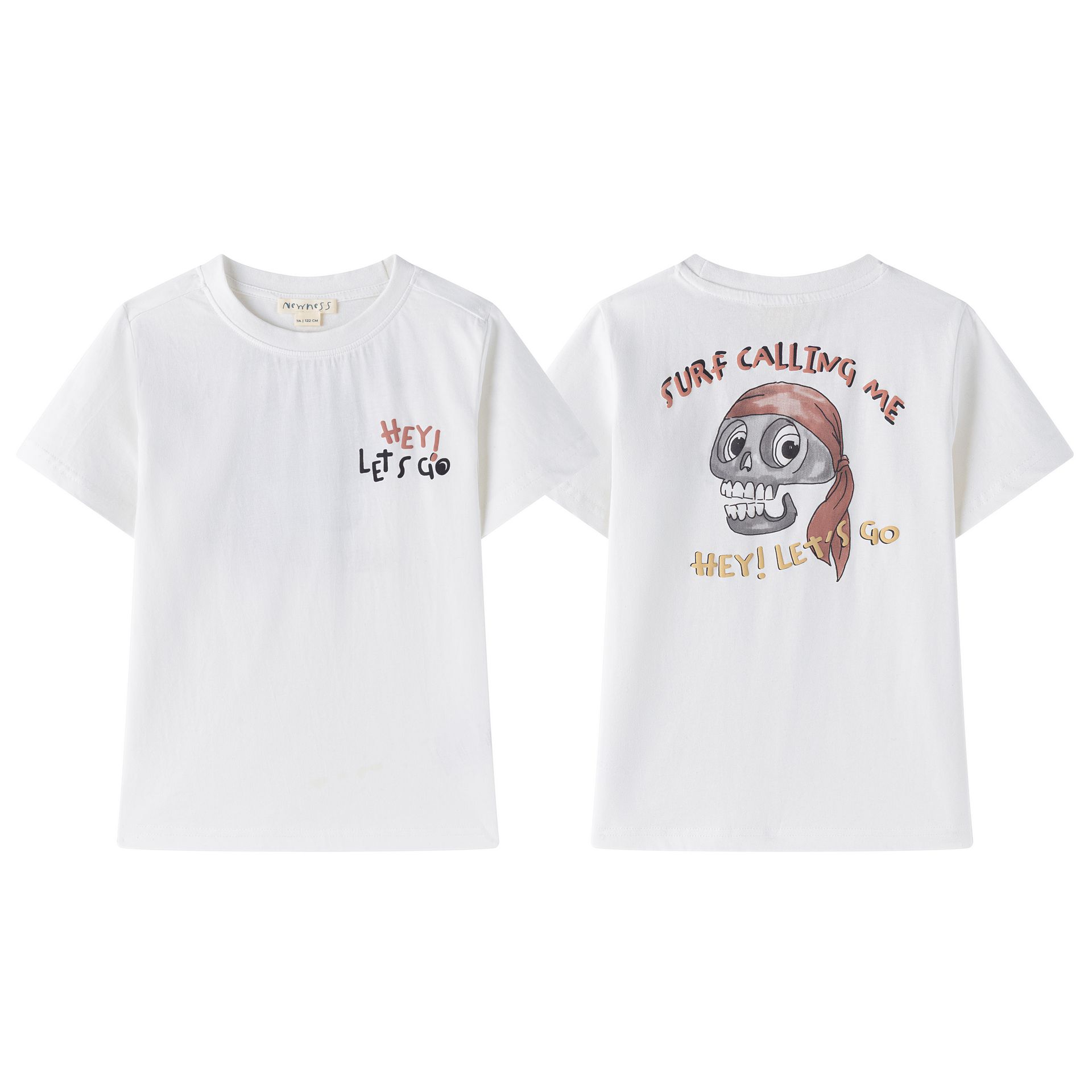 Boys’ T-shirt 7–12Y in white with front and back designs, Wonder & Joy collection