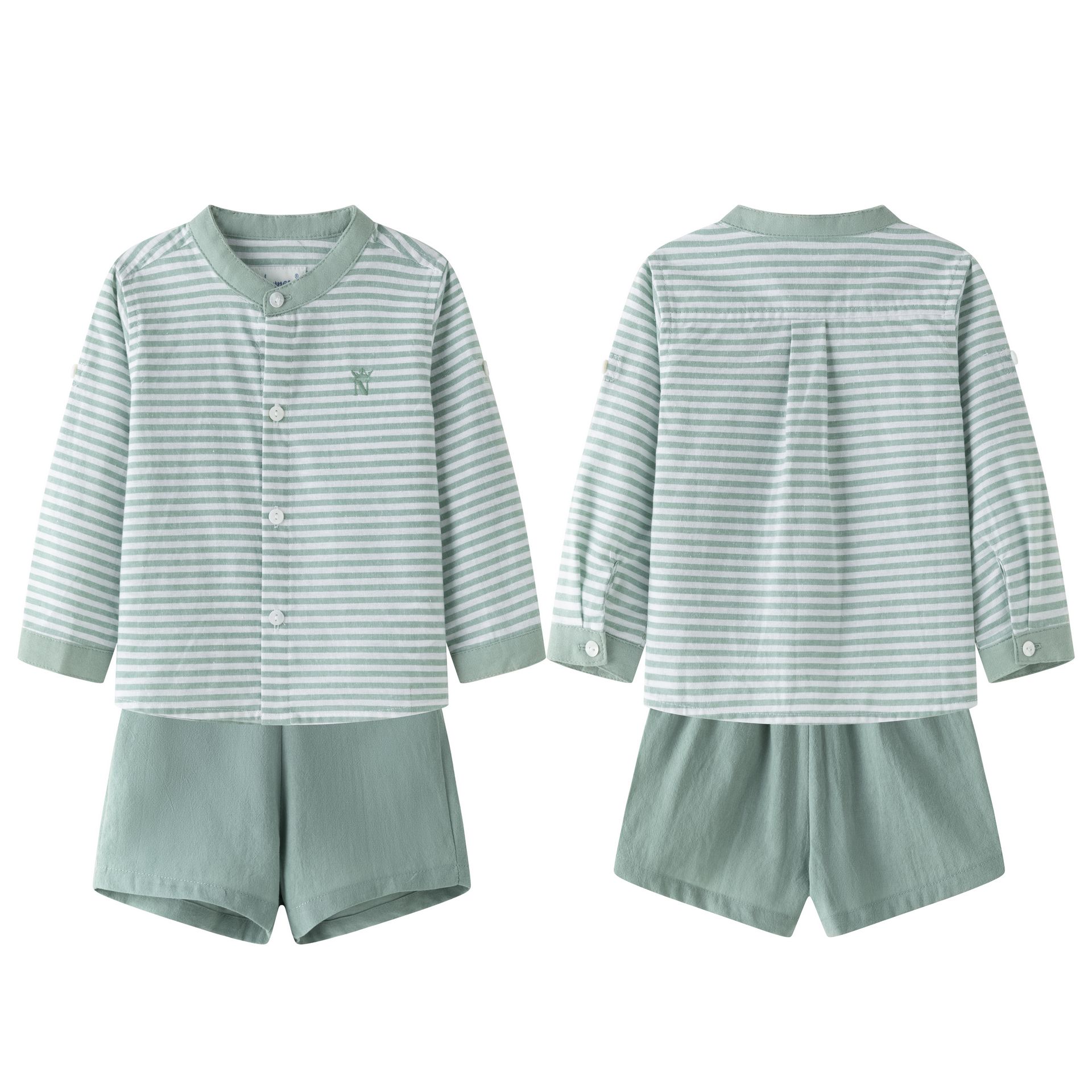 Dressy baby set 6–24M with mandarin-collar striped shirt and medium green pants