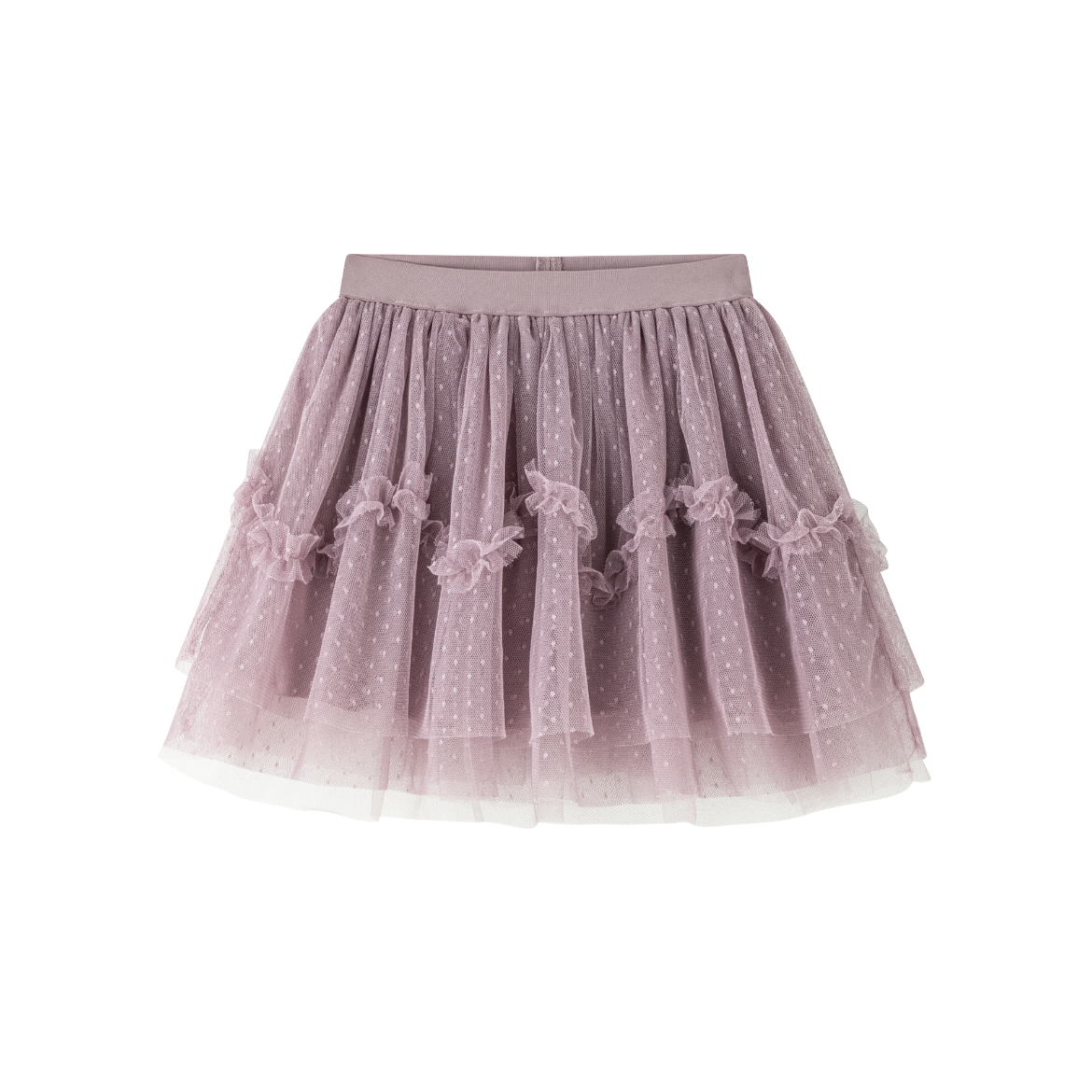 Falda de fiesta, de tul plumeti, con goma elástica en cinturilla. Forro interior en single jersey al tono