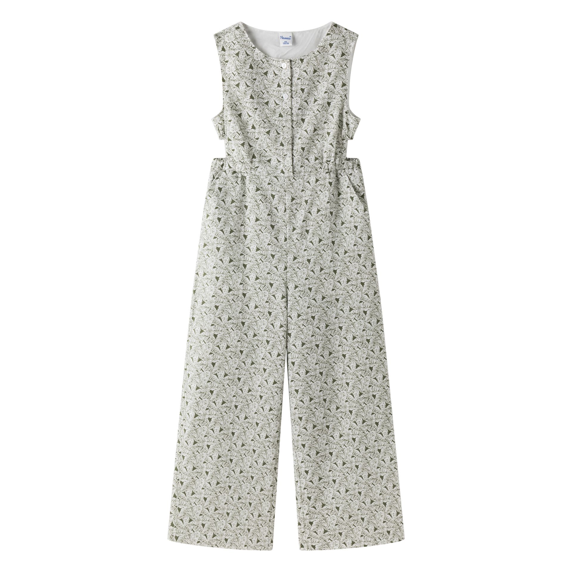 Long jumpsuit in green print with side slits and elastic, Safari World collection