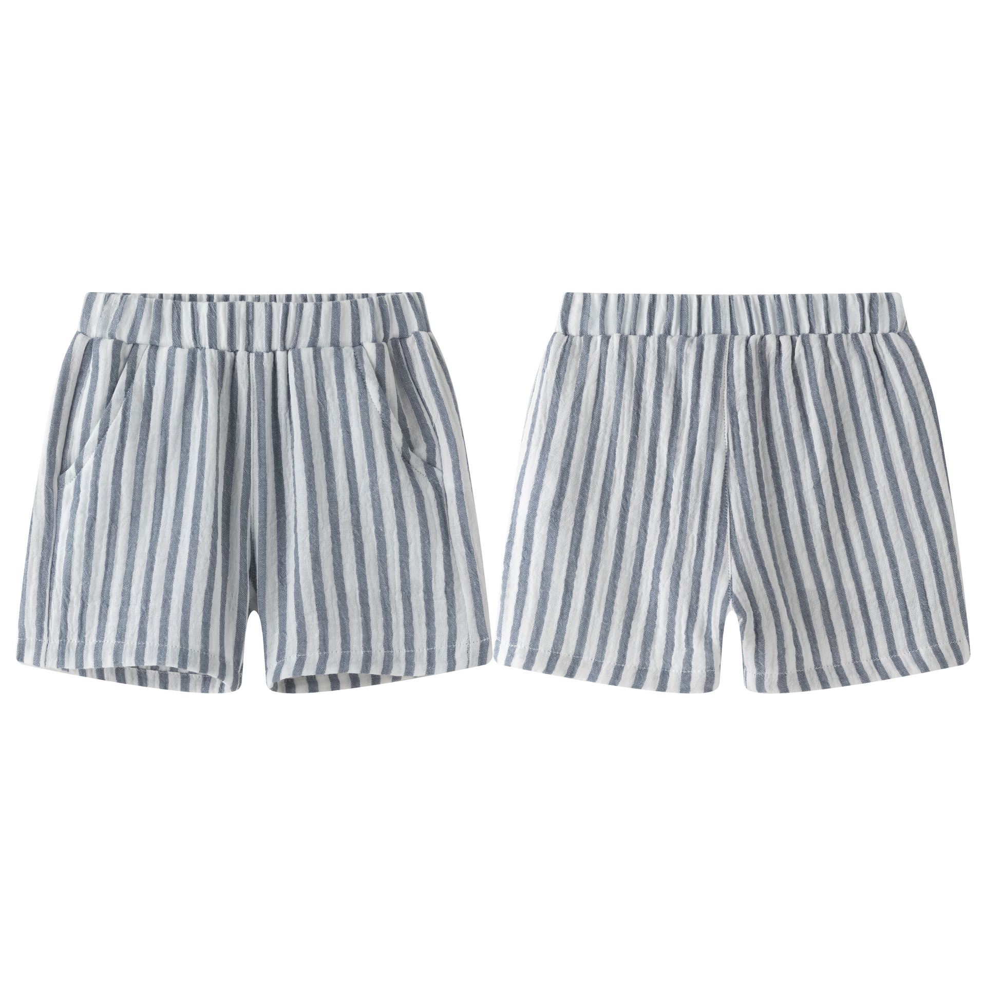 Baby shorts 6–24M in bambula fabric with navy blue fine stripe print, Surf Old Style collection