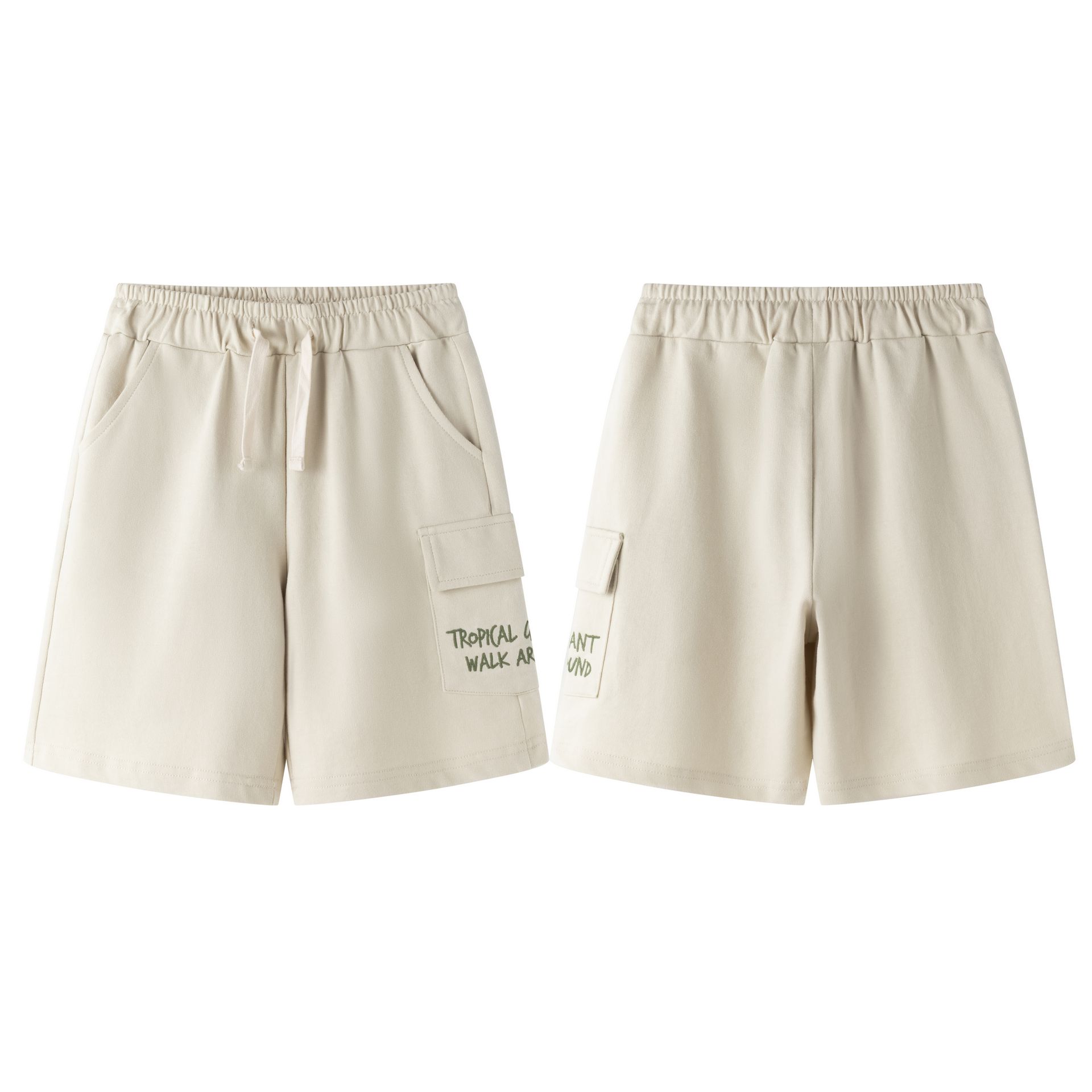 Boys’ shorts 7–12Y in treated beige, stretch cotton, Safari World collection