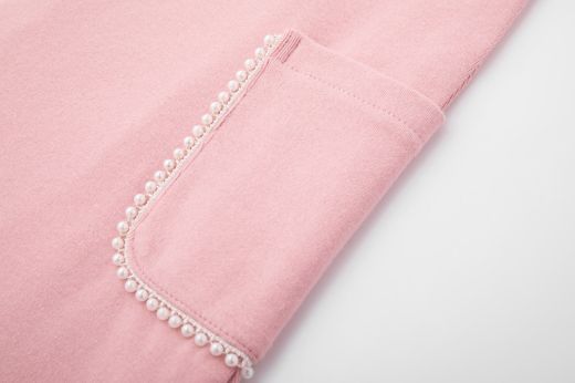Pichi de fiesta en tejido felpa, cuello redondeado y cierre de cremallera invisible en espalda. Bolsillos de plastón en costados con cinta decorativa de perlas.