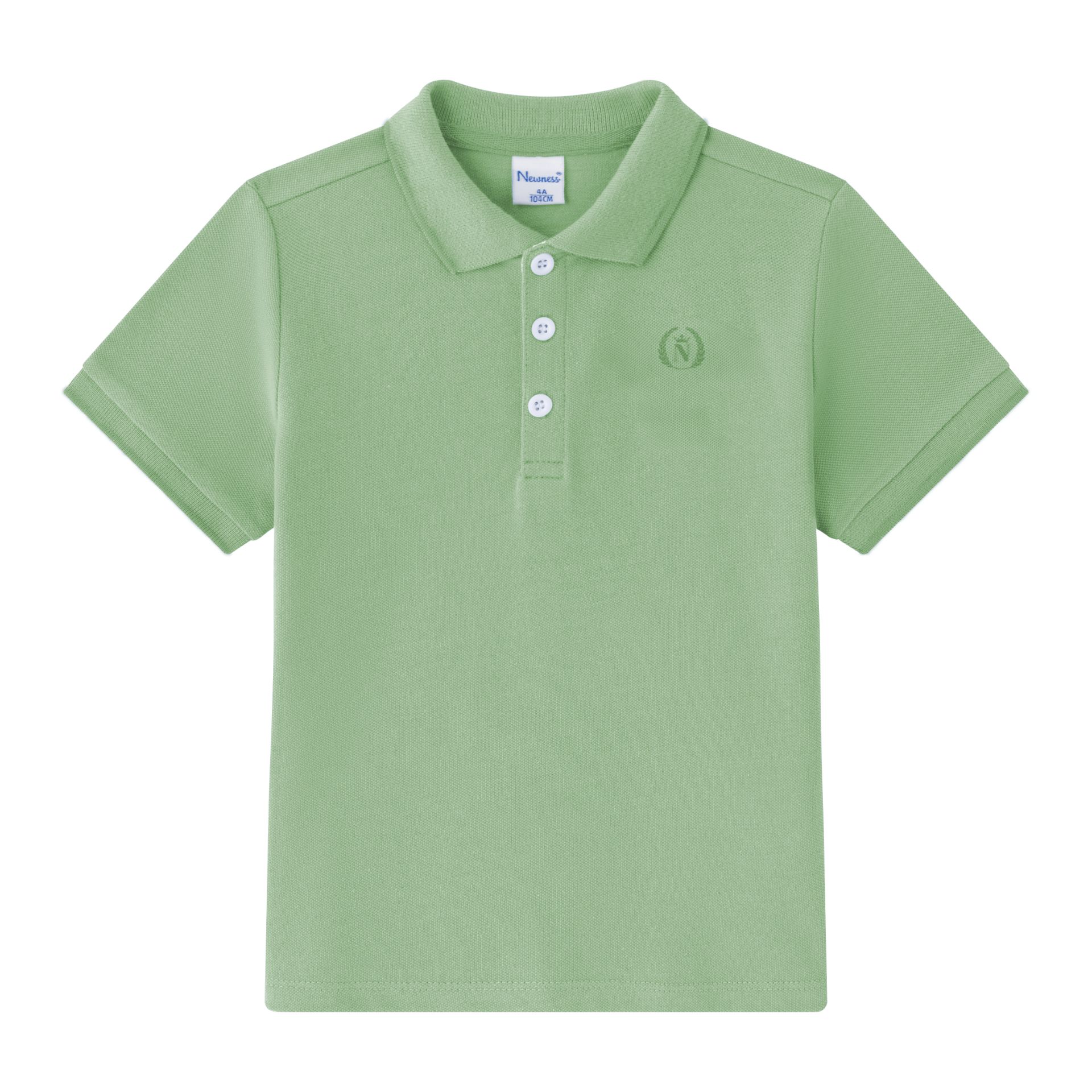 Polo de niƱo de cuello camisero con botones y manga corta. Con bordado a tono en un lateral. Color verde
