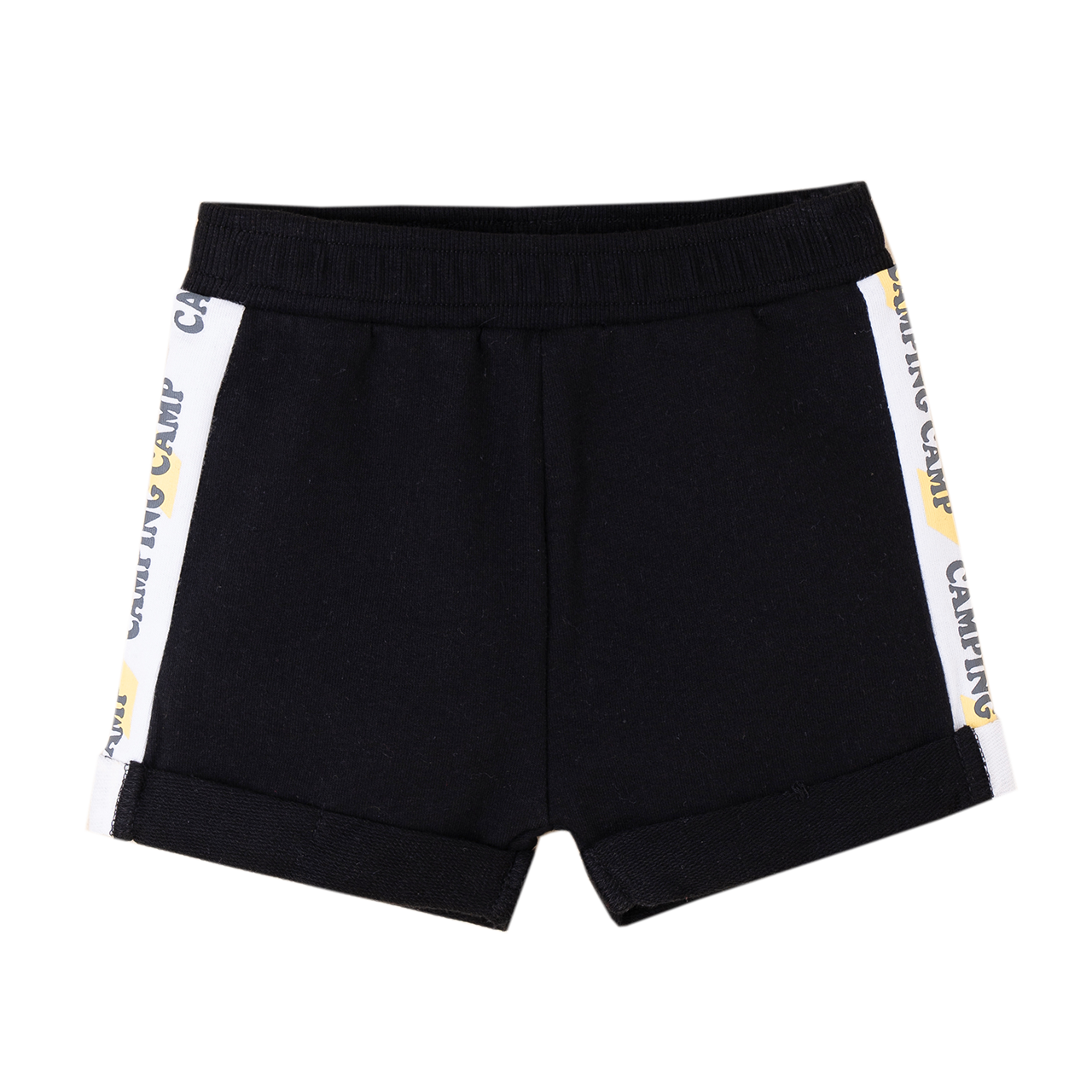 Pantalón corto de algodón con cintura de goma para un mejor ajuste, letras decorativas en los laterales de la prenda.