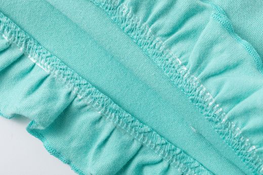 Baby girl shorts with an elastic waistband. Ruffled hem. Star detail on the front. Green.