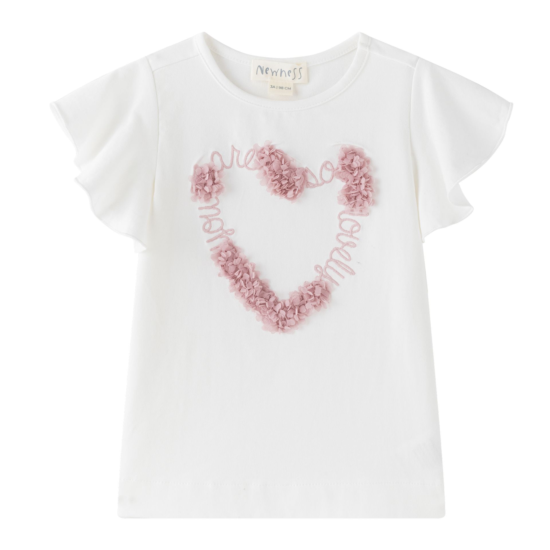 Girls’ T-shirt 3–9Y with petal heart in powder pink