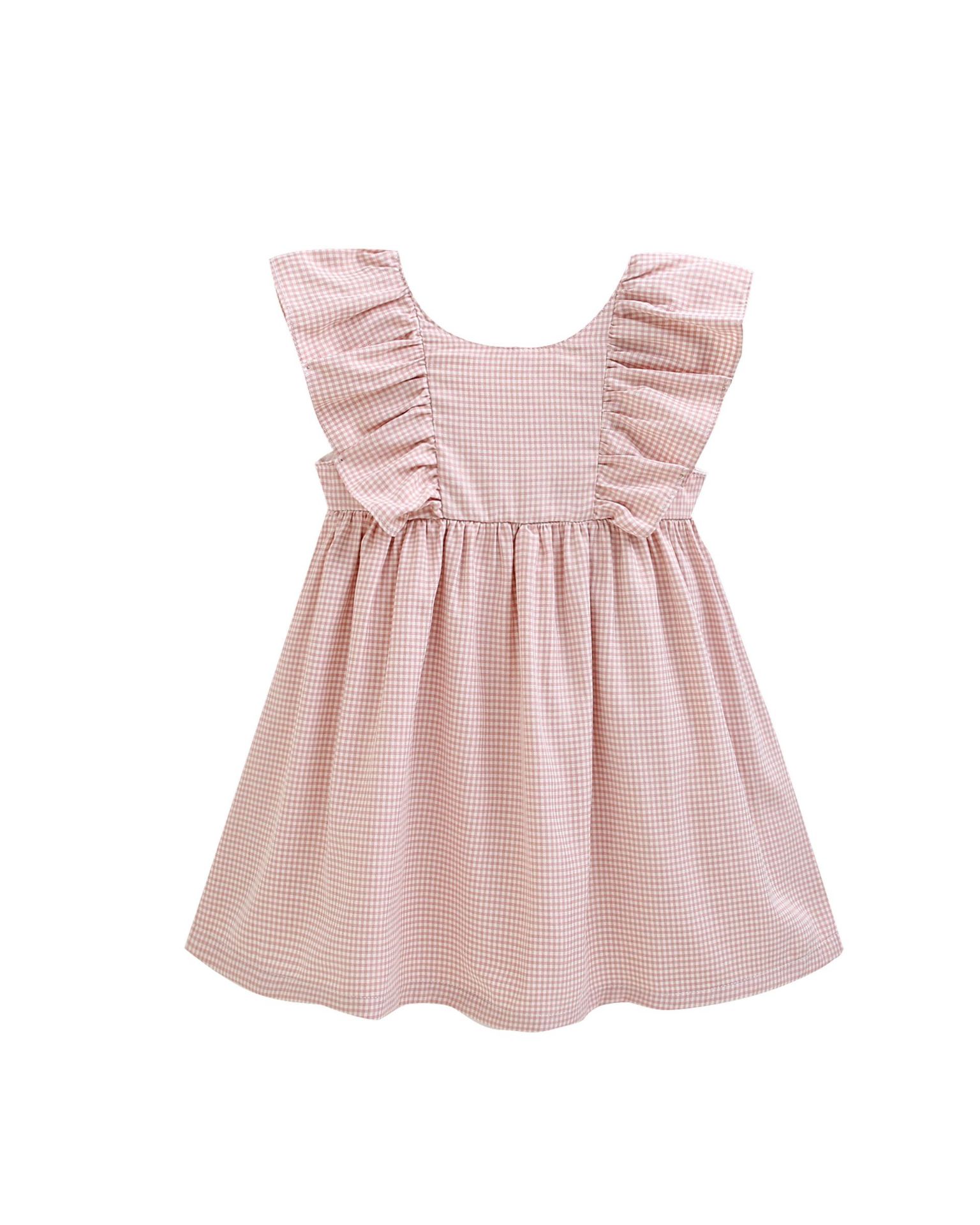 Girls’ dress 3–9Y in dusty pink gingham with U-shaped ruffle finish on the back